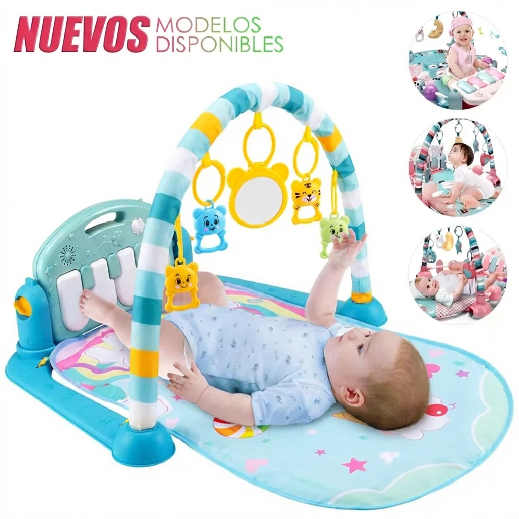 - Set de gimnasio de actividades (alfombra + piano + juguetes colgantes)